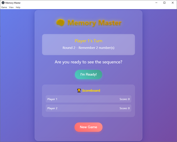 Memory Master is game you can play alone or with friends and family up to 8 players. Each player will get their own number sequence with one number added with every round. The player who gets the longest sequence correct is the winner. This game was created only with the use of AI, to test the waters for a bigger project.
